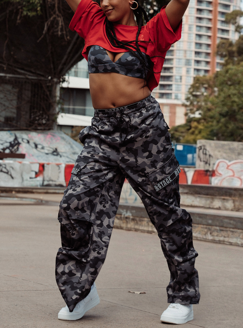 6 functional pockets — 2 deep side pockets, 2 back pockets, and 2 wide feature cargo pockets—so you’re covered from studio to street.